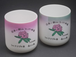 四国山岳植物園(旧シャクナゲの里) 岳人の森を彩る約1,500株のシャクナゲ。開花シーズンには、多くのみなさんがシャクナゲに出会うため、当園を訪れます。そんなシャクナゲの花をあしらった湯飲みのお土産。来園の記念にいかがでしょうか。